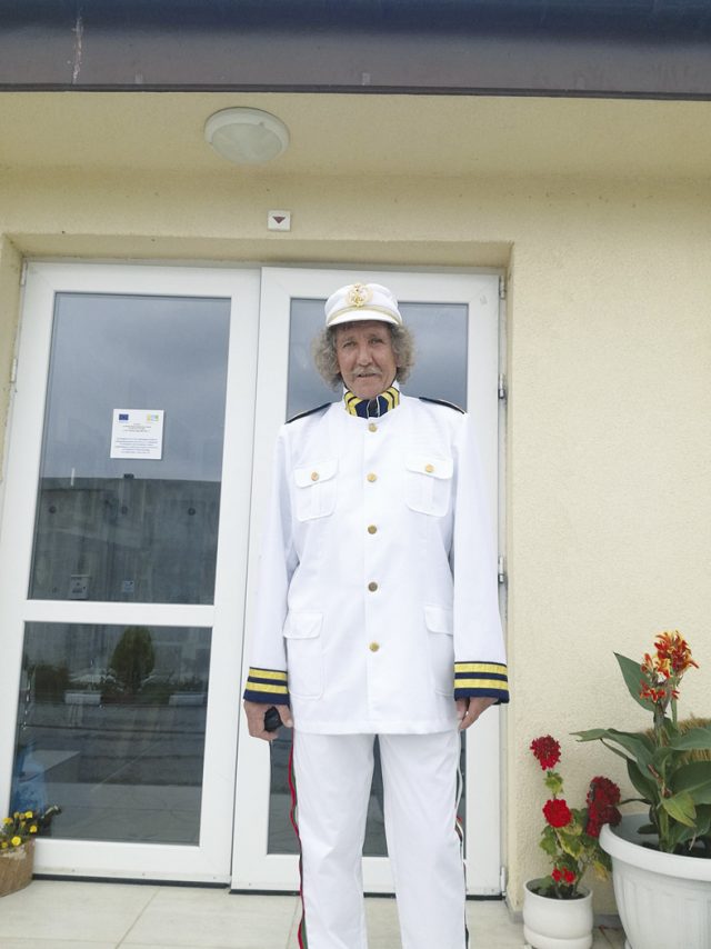 Хрумна ми, че мога по оригинален начин да представя за конкурса павликенската екостанция и съм убеден, че тя е единствена в страната не само с отличната си работа и ефективност, но и с модерния дизайн в администрацията и в двора на голямото съоръжение, казва инж. Папазов, който е запален турист, планинар и родолюбец, а също и почетен председател на общественото движение “Русофили” в Павликени. Затова сам си приспособил адмиралската униформа. И нали му е страст да колекционира най-различни предмети, купил оригинална адмиралска куртка с пагони и звезди, а също шапка с кокарда. Рапирата пък е френска, а белият панталон си е дело на инж. Папазов. Приспособил го от бял анцуг и зашил адмиралските ленти отстрани. Щях да сложа еполетите и медалите, но много тежат, обясни “адмиралът”.