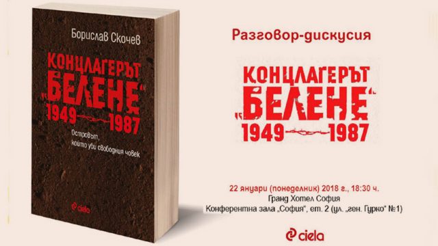 Днес от 18:30 часа в грандхотел „София“ в конферентна зала „София“ ще се състои премиерата на изследването на Борислав Скочев „Концлагерът „Белене“ – 1949-1987 г.“. Модератор ще бъде Даниела Горчева, а представянето ще протече като дискусия с участието на бивши лагеристи, на проф. Евелина Келбечева и отец Паоло Кортези, представител на културен център „Евгени Босилков“.