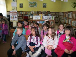 Внимателните „маратонци“ от II „a“ кл. с кл. р-л Н. Славчева при ОУ „Св. Кл. Охридски“. Учениците посетиха и се включиха в „Маратон на четенето – 2015“, точно в 14:30 ч.