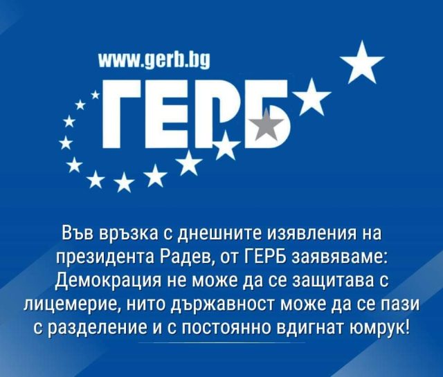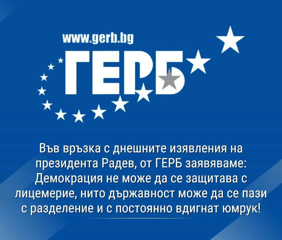 Във връзка с днешните изявления на президента Радев, от ГЕРБ заявяваме: