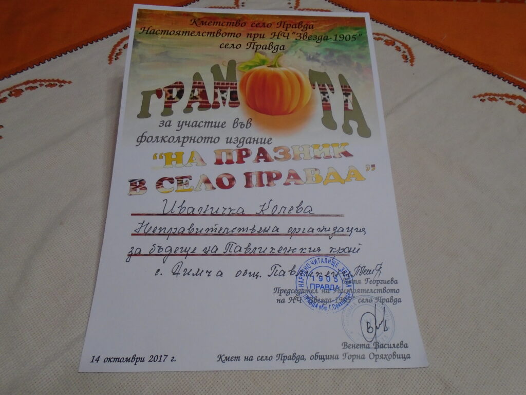 Дейността на НПО „Бъдеще за Павликенския край“ продължава да се разраства, да приобщава привърженици, да прославя името на населеното място не само в периметъра на община Павликени, а и далеч извън нея. Подобни прояви са достойни за уважение и подражание. Адмирации към всички, нагърбили се с благородни дела в името на благоденствието на родния си край.