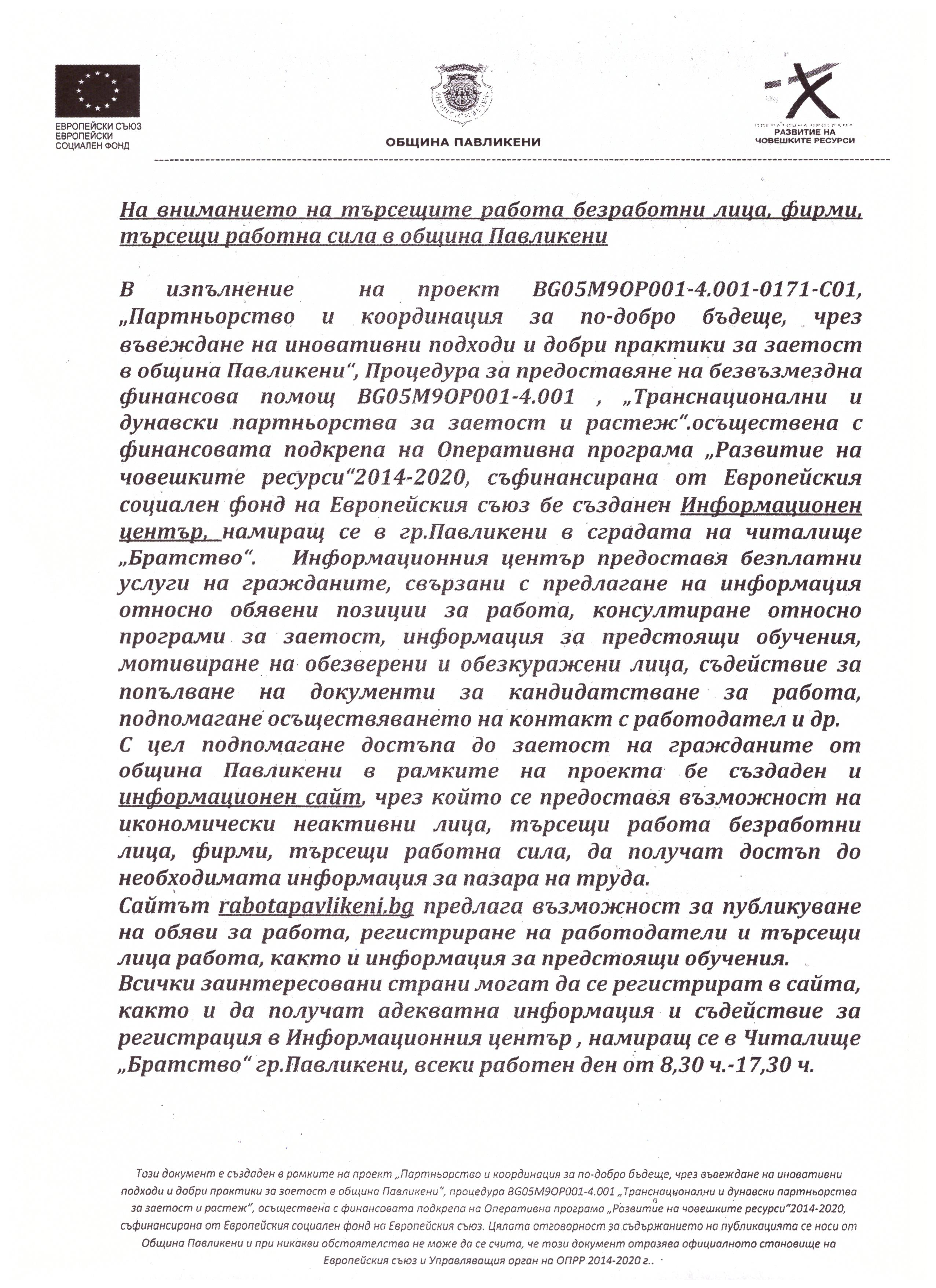 На вниманието на търсещите работа