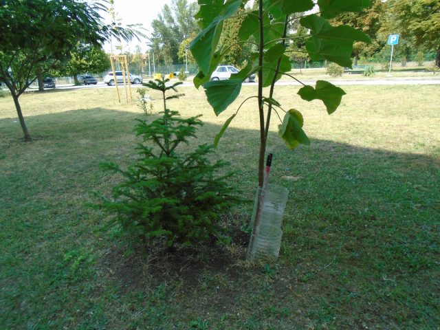 Разстоянието между елхичката и широколистното дръвче е около 40 см.