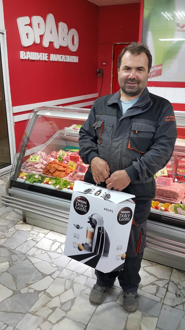 Г-н Емил Петров спечели кафе машина от томболата на кафе Dolce Gusto и магазини БРАВО