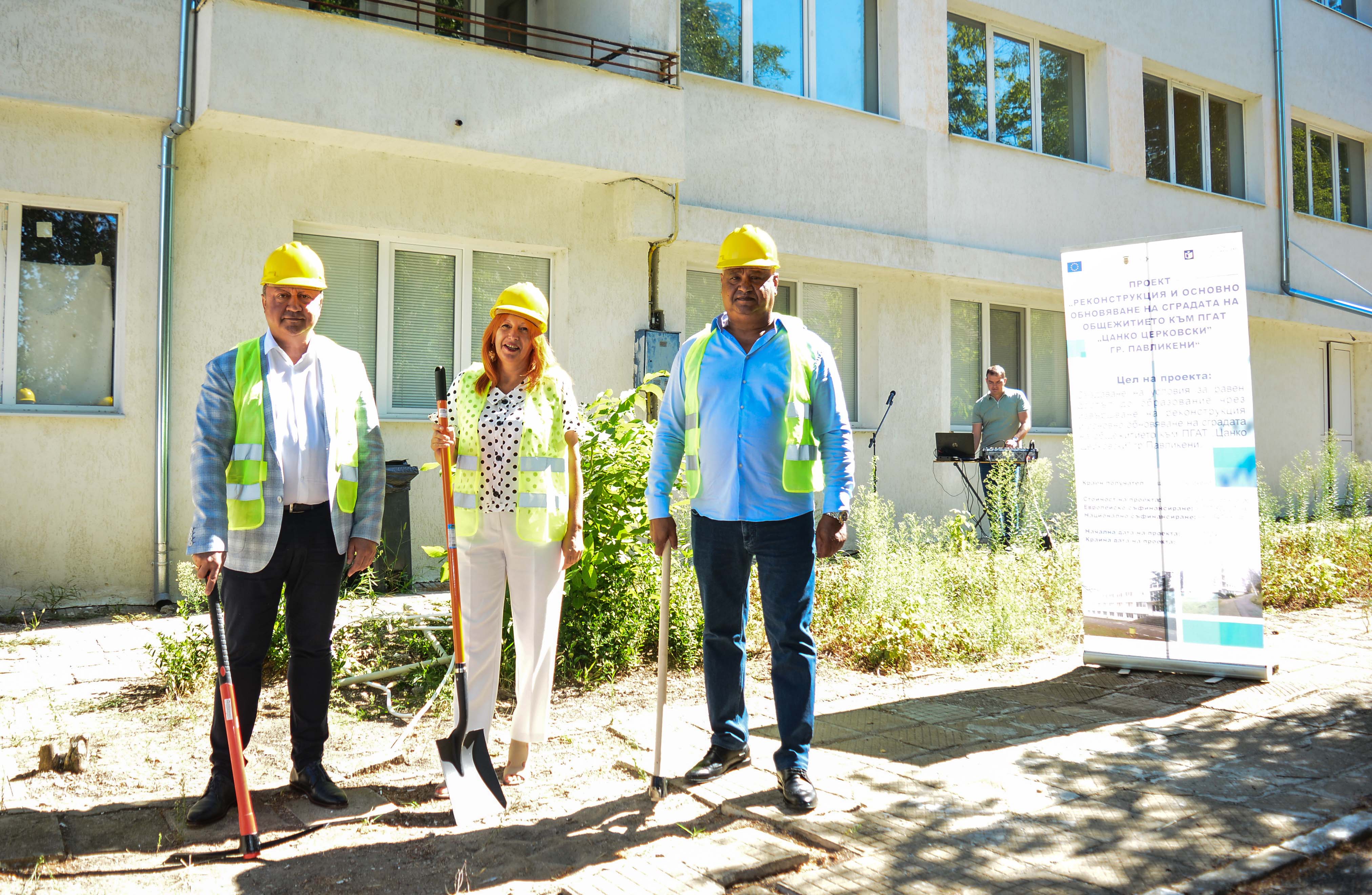 Първа копка на строителната дейност направиха „кмето“ на община Павликени инж. Емануил Манолов, директорът на учебното заведение Миглена Желязкова и представителят на строителната фирма Никола Младенов.
